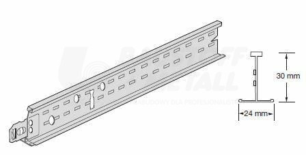 Konstrukcja sufitowa T24 1200 mm, to popularny system stalowego rusztu nośnego do sufitów podwieszanych. Składa się z profili głównych i poprzecznych o szerokości 24 mm, tworzących siatkę montażową dla płyt sufitowych w standardowych modułach (600x600 mm lub 1200x600 mm). System zapewnia stabilność, szybki montaż oraz estetyczne wykończenie sufitu z widoczną konstrukcją. T24 cechuje się uniwersalnością i jest szeroko stosowany w biurach, szkołach, obiektach handlowych i usługowych.